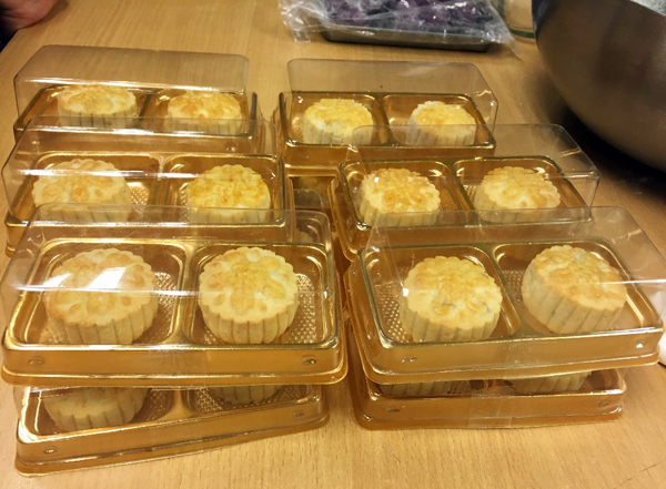 經過大家的努力,準備送給社區獨居老人的月餅做好了