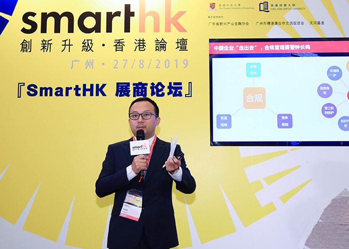 上午11時45分, Smart+科創(chuàng)企業(yè)對接會上,瑞豐德永CEO龔彥斌先生應(yīng)邀發(fā)表了題為《合規(guī)經(jīng)營是中國企業(yè)“走出去”的必由之路》的主題演講,并表示瑞豐德永集團在21個國家47個城市2600多名專業(yè)人士,熟知當(dāng)?shù)胤煞ㄒ?guī)、競爭制度等合規(guī)解決方案,正是企業(yè)“走出去”值得信賴的第三方合規(guī)服務(wù)供應(yīng)商。同時,瑞豐德永一直以來致力于為粵港澳經(jīng)貿(mào)交流搭建對接平臺,深化粵港澳在金融、專業(yè)服務(wù)等領(lǐng)域的合作,助力加快推動內(nèi)地企業(yè)“走出去”發(fā)揮香港“超級聯(lián)系人”的紐帶作用。
