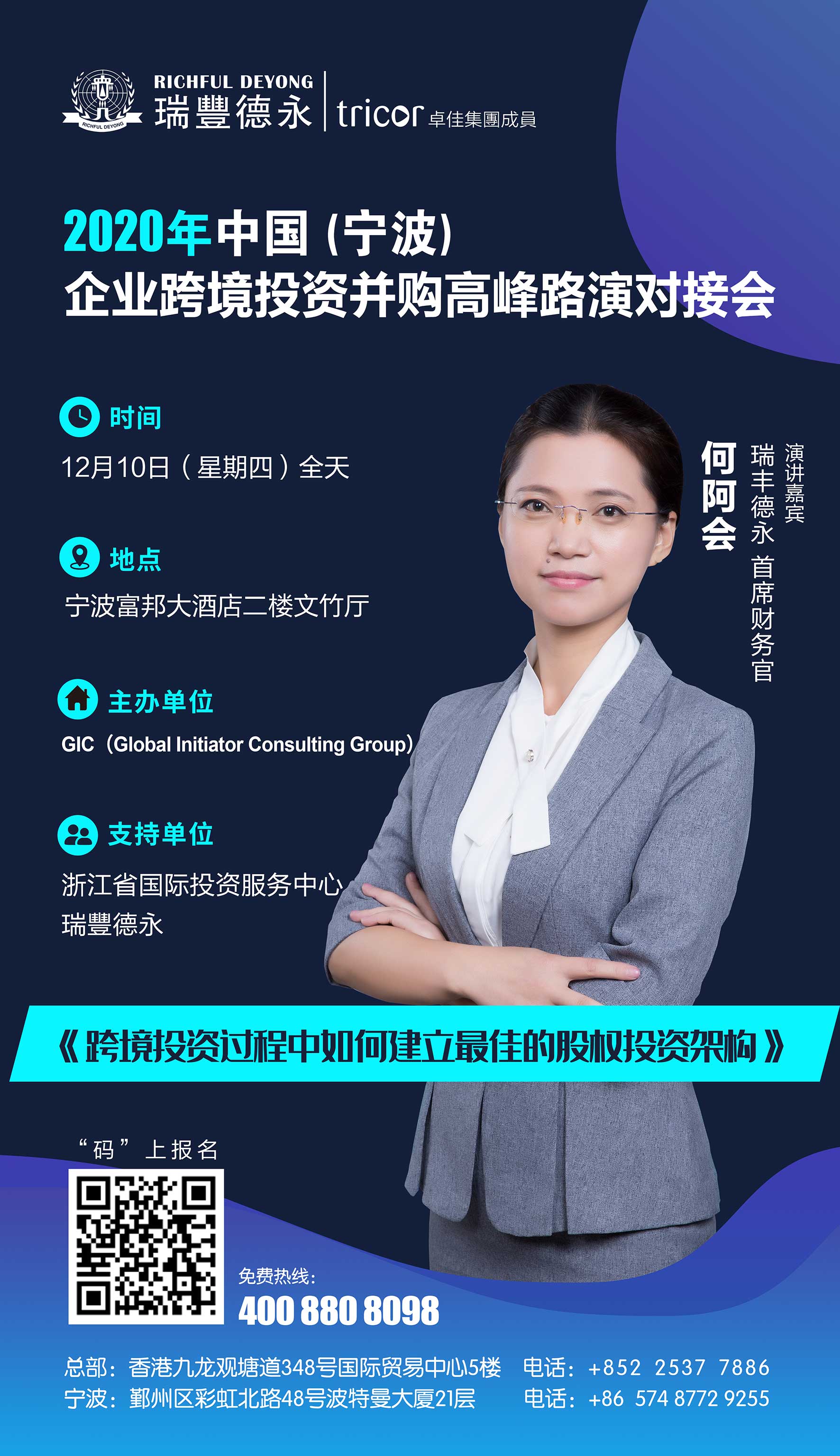 12月10日「2020年中國(guó)(寧波)企業(yè)跨境投資并購(gòu)高峰路演對(duì)接會(huì)」將在寧波富邦大酒店舉辦。