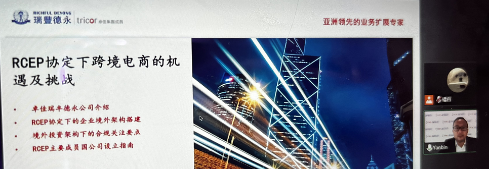 卓佳瑞豐德永行政總裁龔彥斌先生本次圍繞“RCEP協定下跨境電商企業的機遇與挑戰”為主題,先后從“RCEP協定下的企業境外架構搭建”、“境外投資架構下的合規關注要點”兩大核心部分展開解析,并分享了RCEP主要成員國公司設立指南。