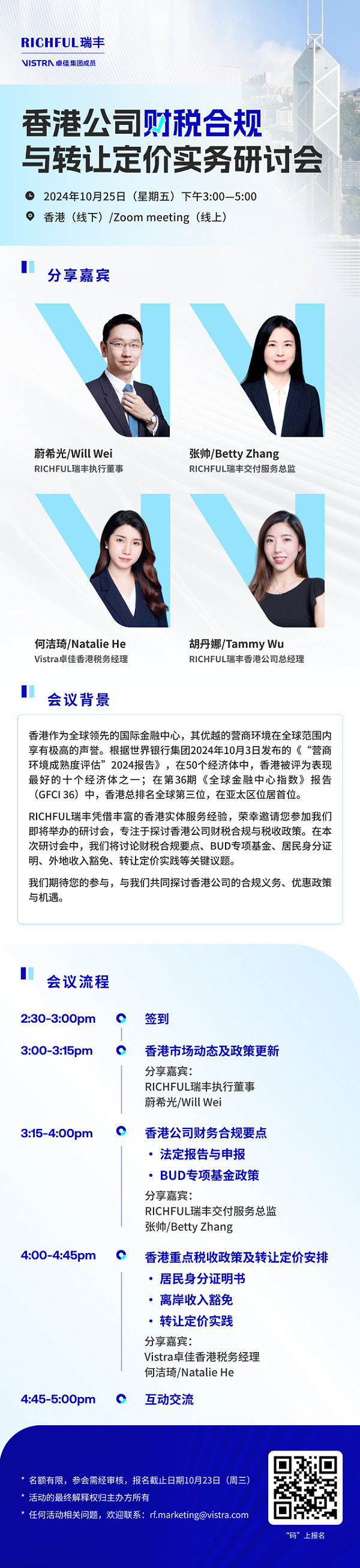 活動邀約 | 香港公司財稅合規與轉讓定價實務研討會