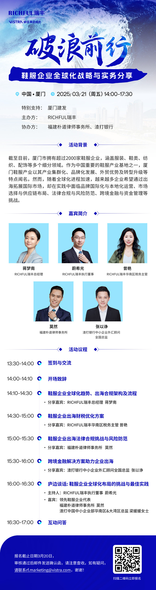 邀請(qǐng)函 | 3月21日 廈門 | 破浪前行——鞋服企業(yè)全球化戰(zhàn)略與實(shí)務(wù)分享