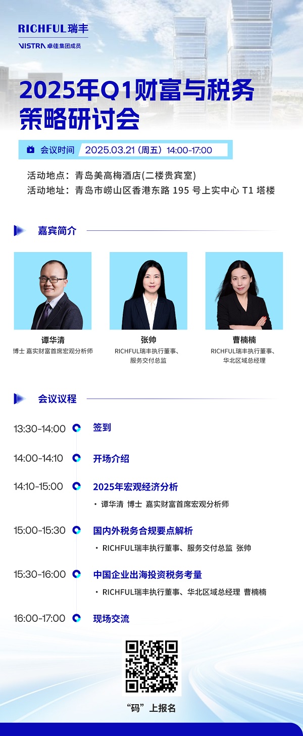 邀請函 | 3月21日 青島 | 2025年Q1財富與稅務策略研討會