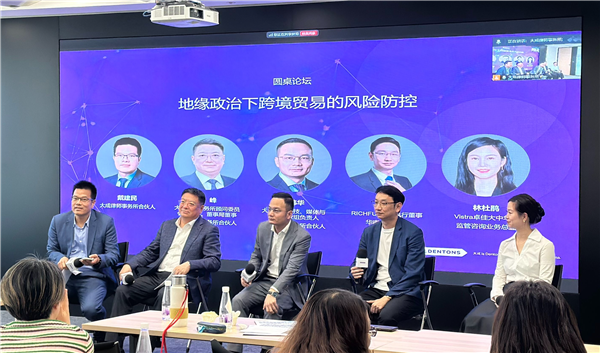 在圓桌討論環(huán)節(jié),大成律師事務(wù)所合伙人戴健民擔(dān)任主持,與Vistra卓佳、大成律所多位專家就"地緣政治下跨境貿(mào)易的風(fēng)險防控"展開深度對話。
