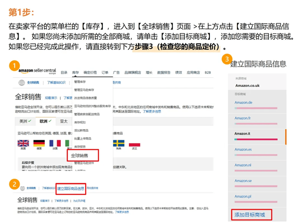 步驟二:在英國店鋪以及以下任一或所有歐盟店鋪中發布商品信息:德國、法國、意大利和西班牙