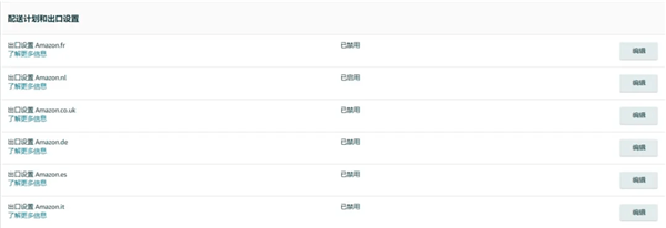 4.啟用目的國亞馬遜物流“配送計劃和出口設置”(【設置】 > 【亞馬遜物流】 > 【配送計劃和出口設置】 > “已啟用”);對于從歐盟(德國/法國/意大利/西班牙)到英國的歐洲配送網絡,賣家需要在所有歐盟國家(德國/法國/意大利/西班牙)啟用亞馬遜物流“配送計劃和出口設置”
