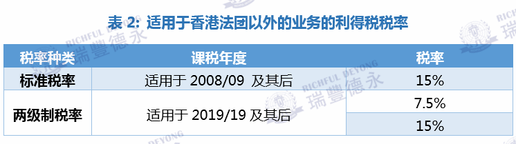 香港政府為了提升國(guó)際競(jìng)爭(zhēng)力及促進(jìn)經(jīng)發(fā)展,在維持原有一般法團(tuán)適用的稅率16.5%及法團(tuán)以外的業(yè)務(wù)適用的標(biāo)準(zhǔn)稅率15%的基礎(chǔ)上,自2018年4月1日開(kāi)始實(shí)行利得稅級(jí)兩級(jí)制。