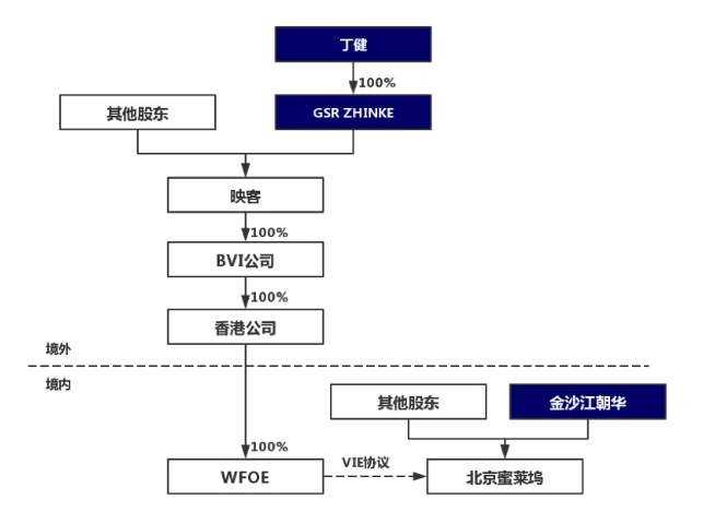 在近期赴港完成上市的新經濟企業中,映客通過重組搭建了VIE架構,其中注冊在英屬開曼群島的映客為境外融資平臺及上市主體,北京蜜萊塢網絡科技有限公司(簡稱“北京蜜萊塢”)為境內VIE公司。