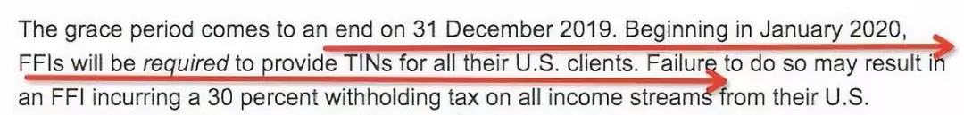 所有美國公民、美國綠卡持有人,以及常住美國的人士注意了:從2019年12月31日開始,美國國稅局IRS,將最終結(jié)束其長期運(yùn)行的《海外賬戶納稅法案》(FATCA“肥咖”條款)寬限期。寬限期一旦結(jié)束,只要你賬戶符合“美國人身份”(后文有詳細(xì)解讀),就必須提供美國稅號(hào)(TIN),海外賬戶被查出沒有申報(bào),除了會(huì)面臨高額罰款外,賬戶會(huì)被美國國稅局凍結(jié),甚至面臨刑事處罰!這意味著希望避免賬戶凍結(jié)的美國納稅人,現(xiàn)在只有不到一個(gè)星期的時(shí)間,來應(yīng)對(duì)可能的后果。