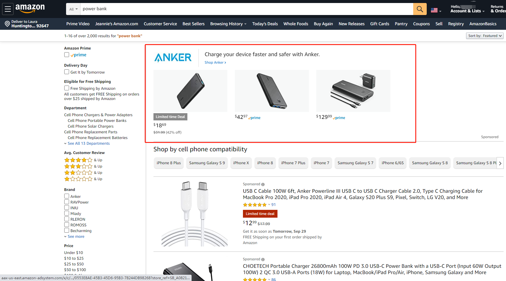 隨機在亞馬遜上搜索一個關鍵詞,搜索結果的前端展示大部分都是品牌賣家的廣告,同一個關鍵詞下,品牌賣家總是比無品牌賣家有著更靠前的展示機會。