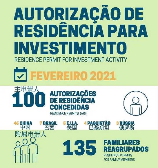 根據(jù)葡萄牙移民局(SEF)發(fā)布了2021年2月分黃金居留許可數(shù)據(jù),2月份葡萄牙SEF向235位申請(qǐng)者(100位投資人+135位家屬)授予了黃金居留許可,相比2021年1月份獲批的135位申請(qǐng)者(55位投資人+80位家屬)環(huán)比增長(zhǎng)了82%。