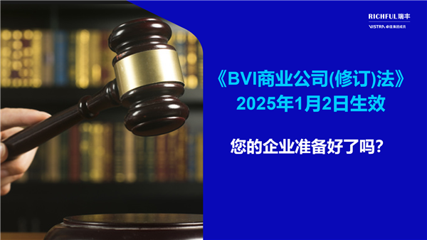 對于在BVI設有業務或計劃在該地區設立公司的企業來說,了解并準備應對這些變化至關重要。為了確保順利過渡到新法律框架,BVI的監管機構可能會提供詳細的指導方針和實施細節。RICHFUL瑞豐目前正在密切關注相關更新,積極確定提交資料的相關流程細節,并將在接下來的幾周和幾個月內與您保持持續溝通,以便于您及時調整運營和合規策略,確保符合新法律的要求。